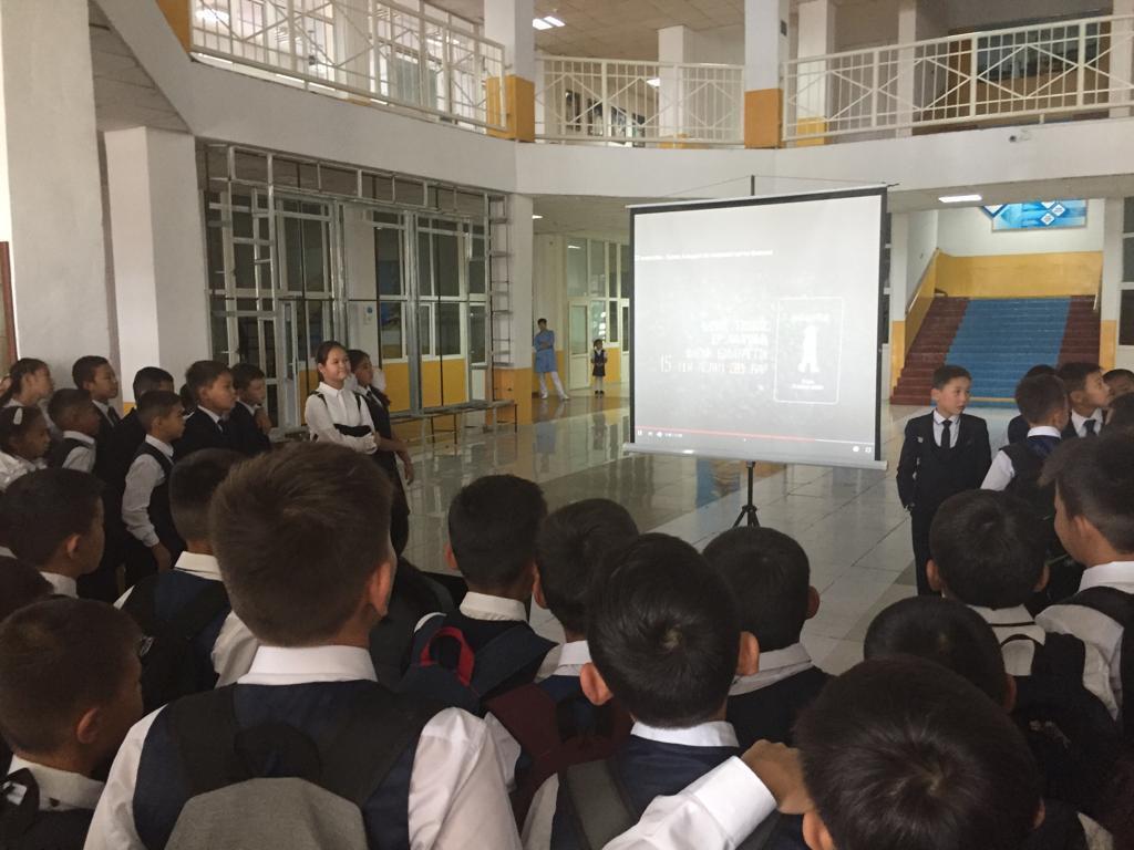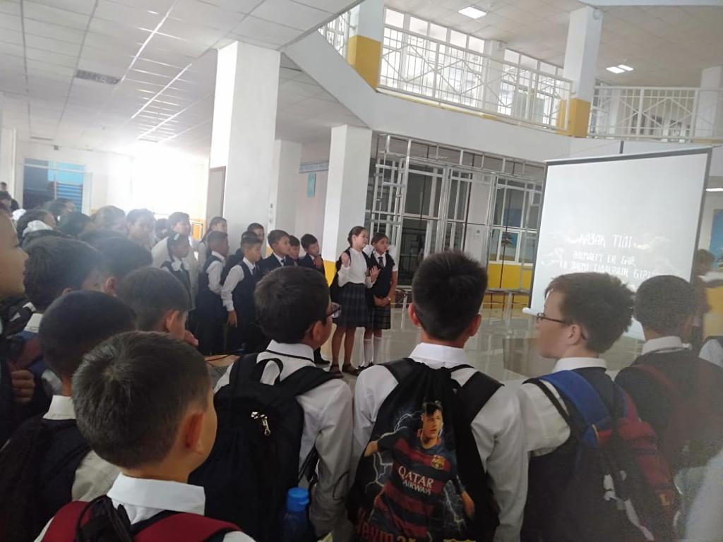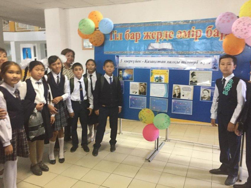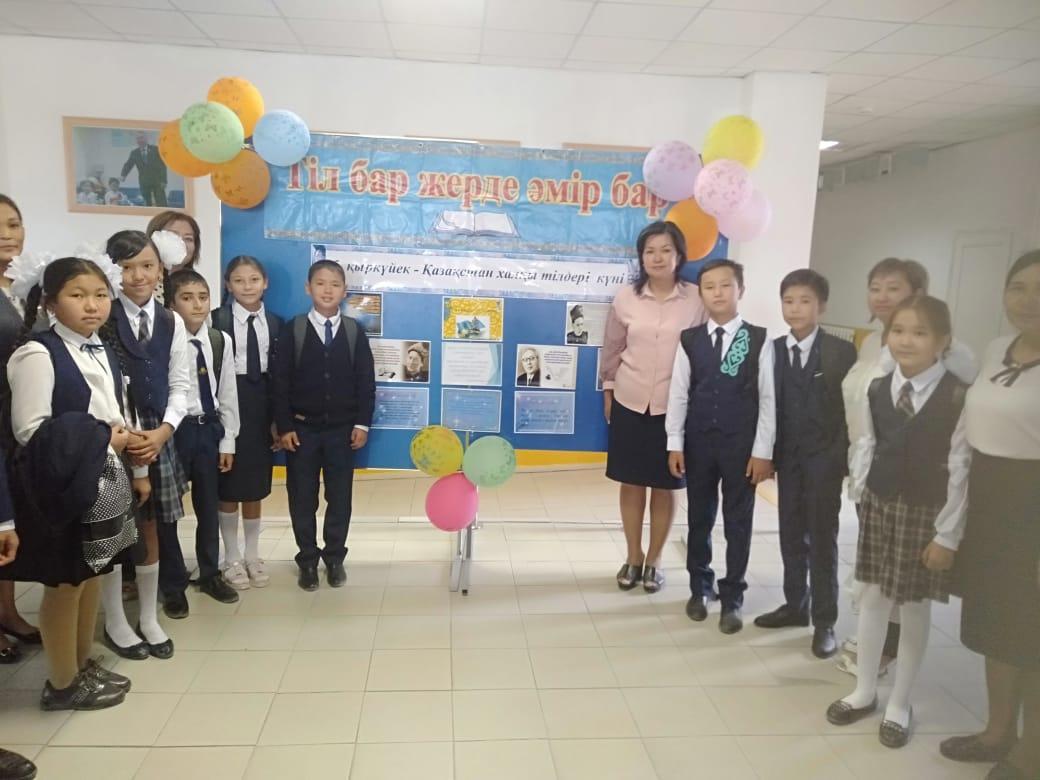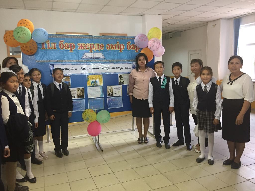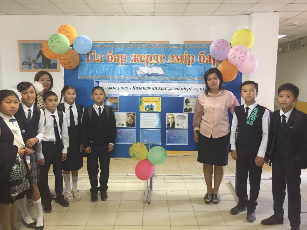 05 сентябрь 2019 0 1 2 3 4 5 "Қазақстан халқы тілдерінің күні" № 54 орта мектебінде 5 қыркүйек күні "Қазақстан халқы тілдерінің күні" мерекесіне байланысты мектеп фойесінде тәрбие ісі-жөніндегі орынбасары Г.Шантаевамен бірлесе отырып, тіл бірлестіктері іс-шара өткізді.