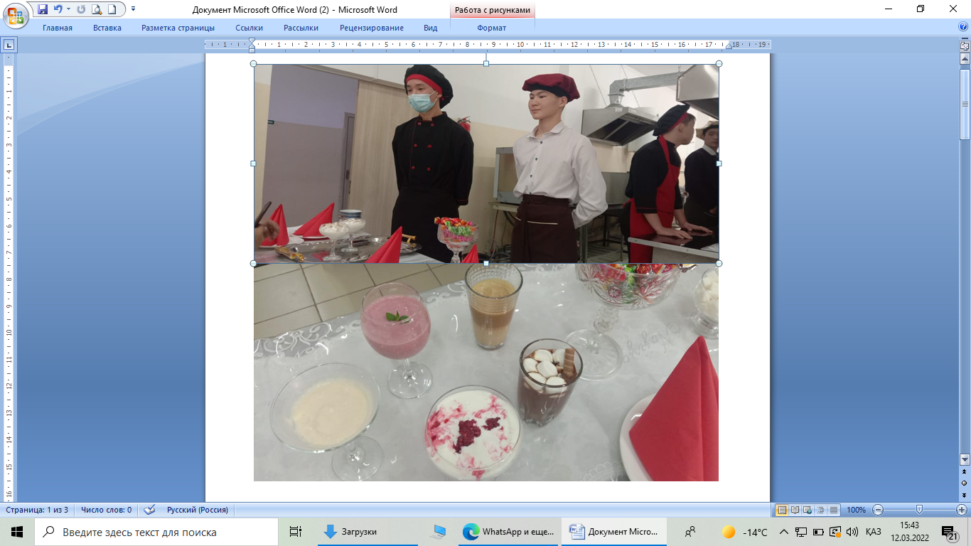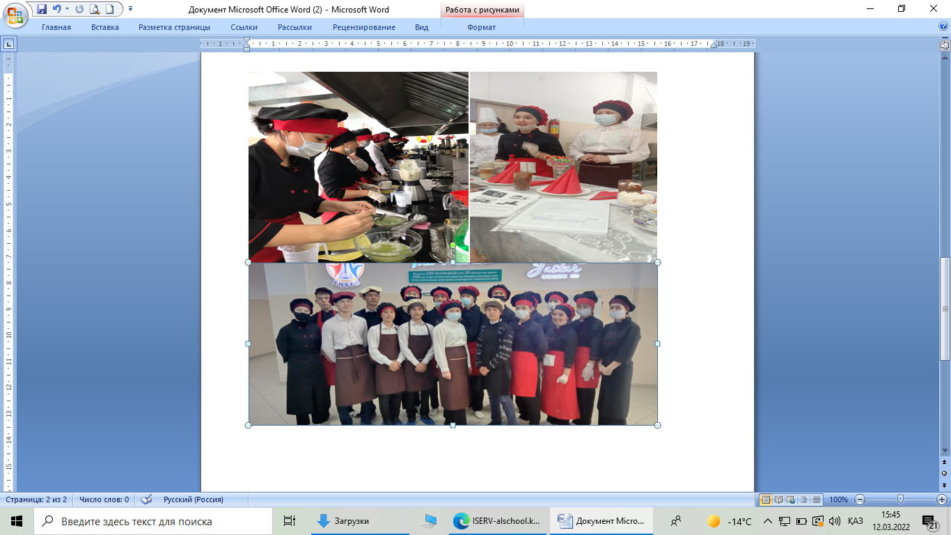 Кәсіптік бағдар беру мақсатында №54 орта мектептің 9-сынып білім алушылары 2022 жылдың 11 наурыз күні Тараз сервис және технология колледжінде «Тамақтандыруды ұйымдастыру және қонақ үй шаруашылығы» бағытында өткізілген декадаға қатысты. Декада барысында «Салқын және ыстық сусындар» атты өндірістік оқыту сабағында білім алушылар сусындарды дайындау барысын бақылап, өз қолдарымен де әзірледі. Білім алушылардың аспаз мамандығына деген қызығушылығы оянып, болашақта сол мамандықтың пайдасы мол екендігін түсінді.