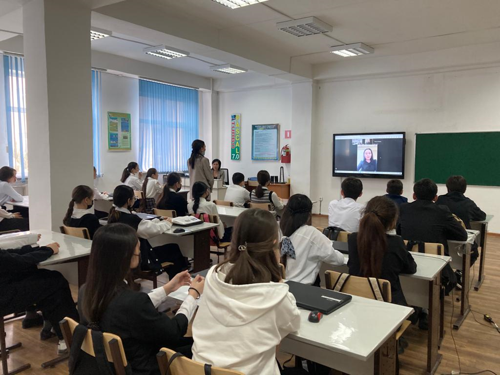 "Жомарт түлек" жобасы аясында кездесуі өтті. Аталған кездесуге қазіргі таңда "Қазақстан халық банкі" қызметкері болып жұмыс істейтін, мектеп түлегі Бекқожаева Мадина қатысты. Мадина білім алушыларға мамандық таңдауда қателеспеу қажеттігін, өз бейініне қарай таңдау жасау керектігін баса айтты. Кездесу қызықты өтті.