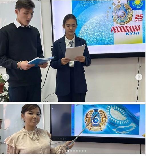 20 қазан күні Республика күні мерекесінің жаңа ұлттық мереке ретінде, өз Отаны – Қазақстан Республикасына деген сүйіспеншілікке тәрбиелеу мақсатында 1-11 сыныптың жетекшілері «Менің Отаным – Қазақстан» тақырыбында бірыңғай сынып сағаттар шеруін өткізді. #Республикакүні