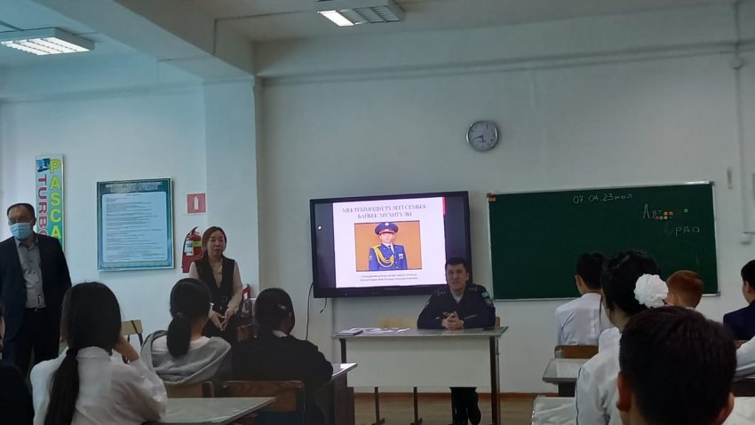 7 сәуір күні " Жомарт түлек " жобасы аясында 7"Ә", 7"Д" сынып оқушылары мектебіміздің түлегі Сембек Байбек Мұхитұлымен кездесу өткізілді. Мақсаты: мектебімізден түлеп ұшқан, елімізге адал еңбегімен еңбек етіп жүрген түлектердің табысты өмір жолын жас ұрпаққа үлгі ету. Байбек Мұхитұлы қазіргі таңда "Төтенше жағдайлар департаменті төтенше жағдайларды жою басқармасының инженері" қызметін атқарады. Кездесу барысында оқушылар өздерін толғандырған сұрақтарға жауап алды.