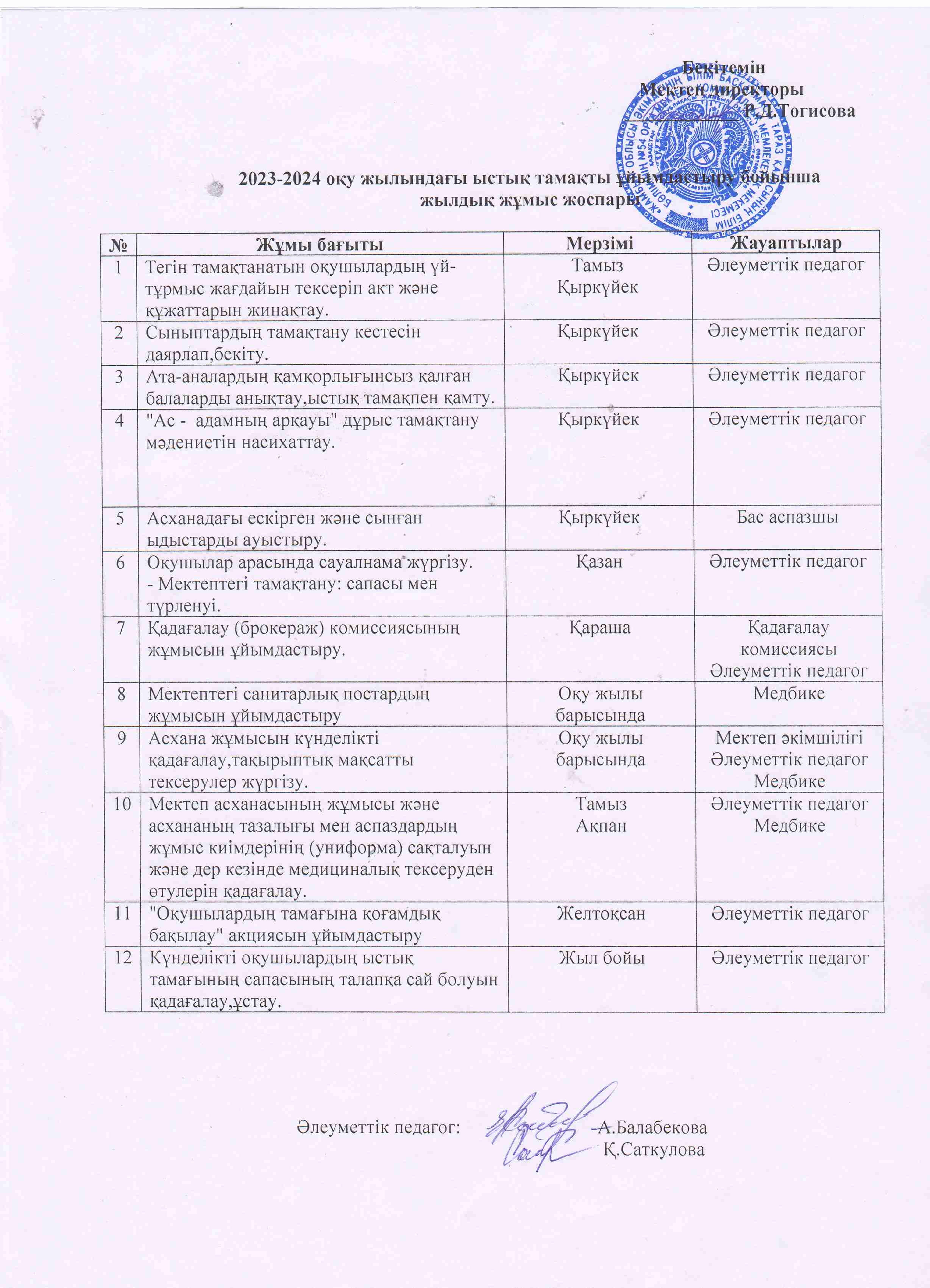 Асхана . Жоспар 2023-2024 оқу жылына » №54 орта мектебі