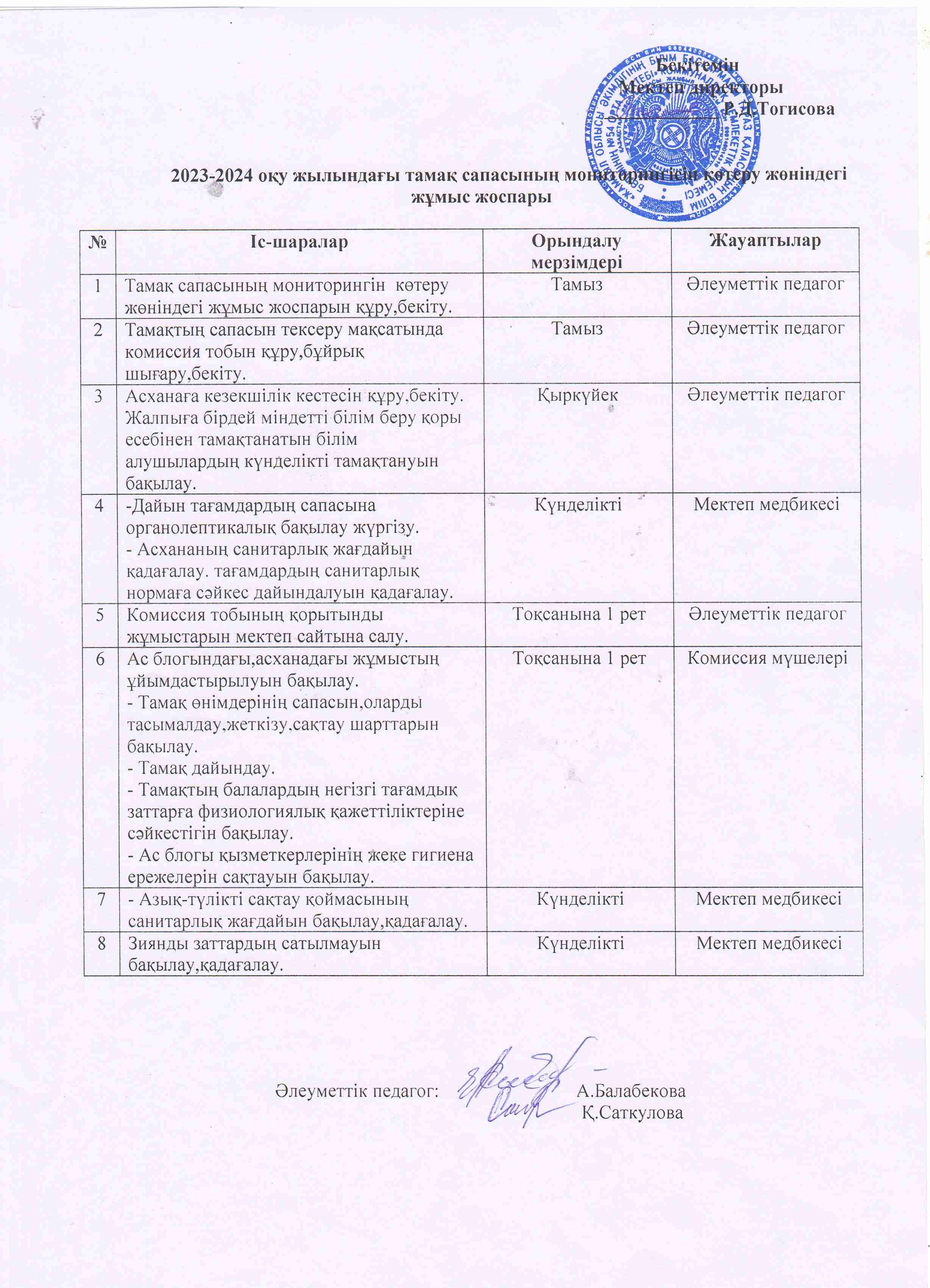 » » Асхана жұмыстар, жоспары, ыстық тамақты бақылау.