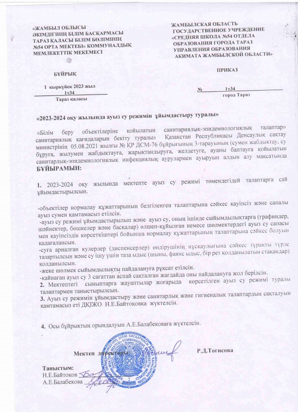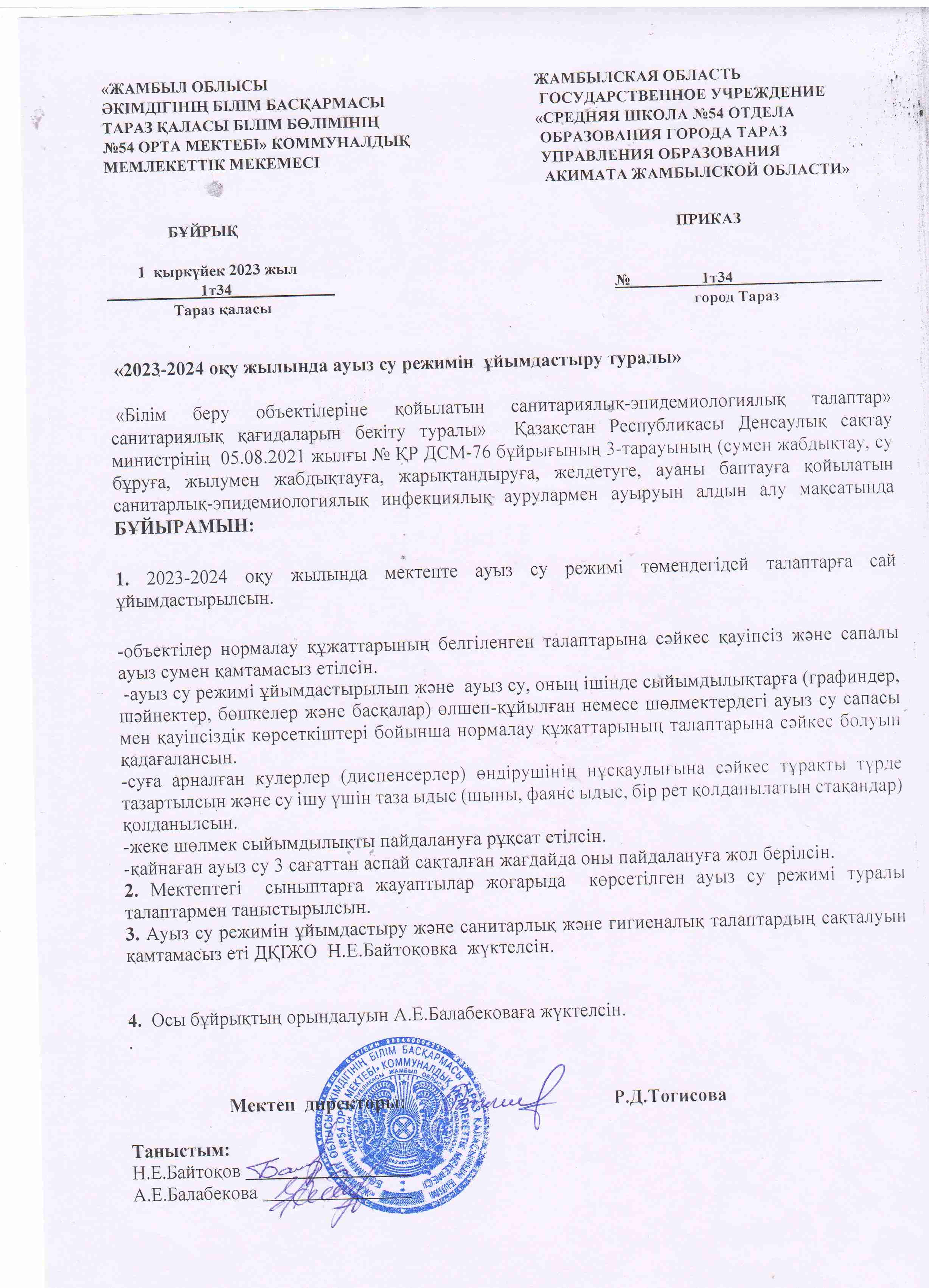 Асхана жұмыстар, жоспары, ыстық тамақты бақылау. » №54 орта мектебі