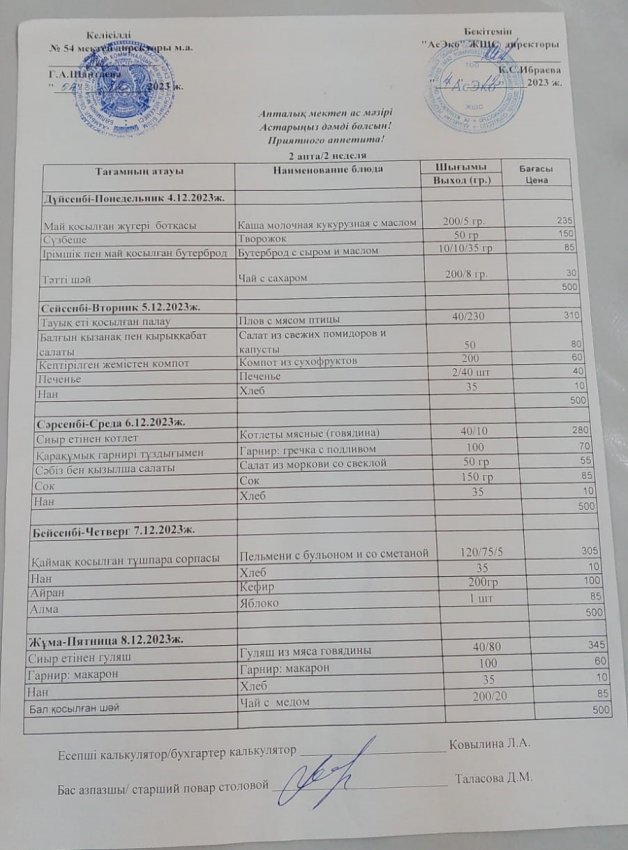 Асхана меню 27.11-08.12 .2023 » №54 орта мектебі