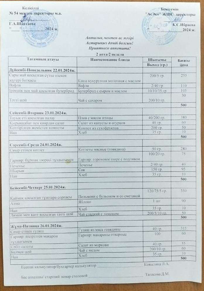 22.01-26.01 Асхана мәзірі » №54 орта мектебі