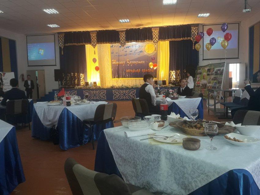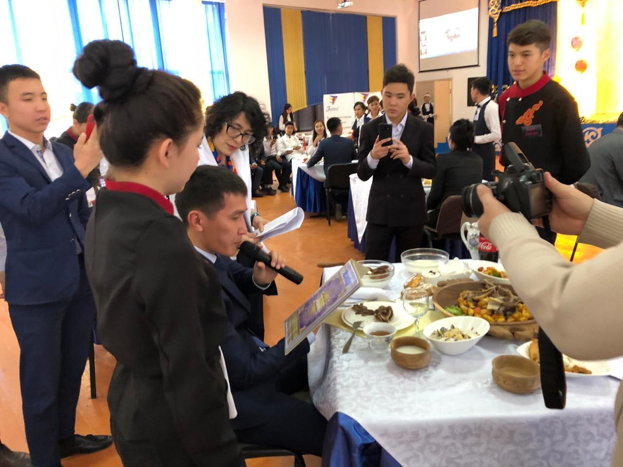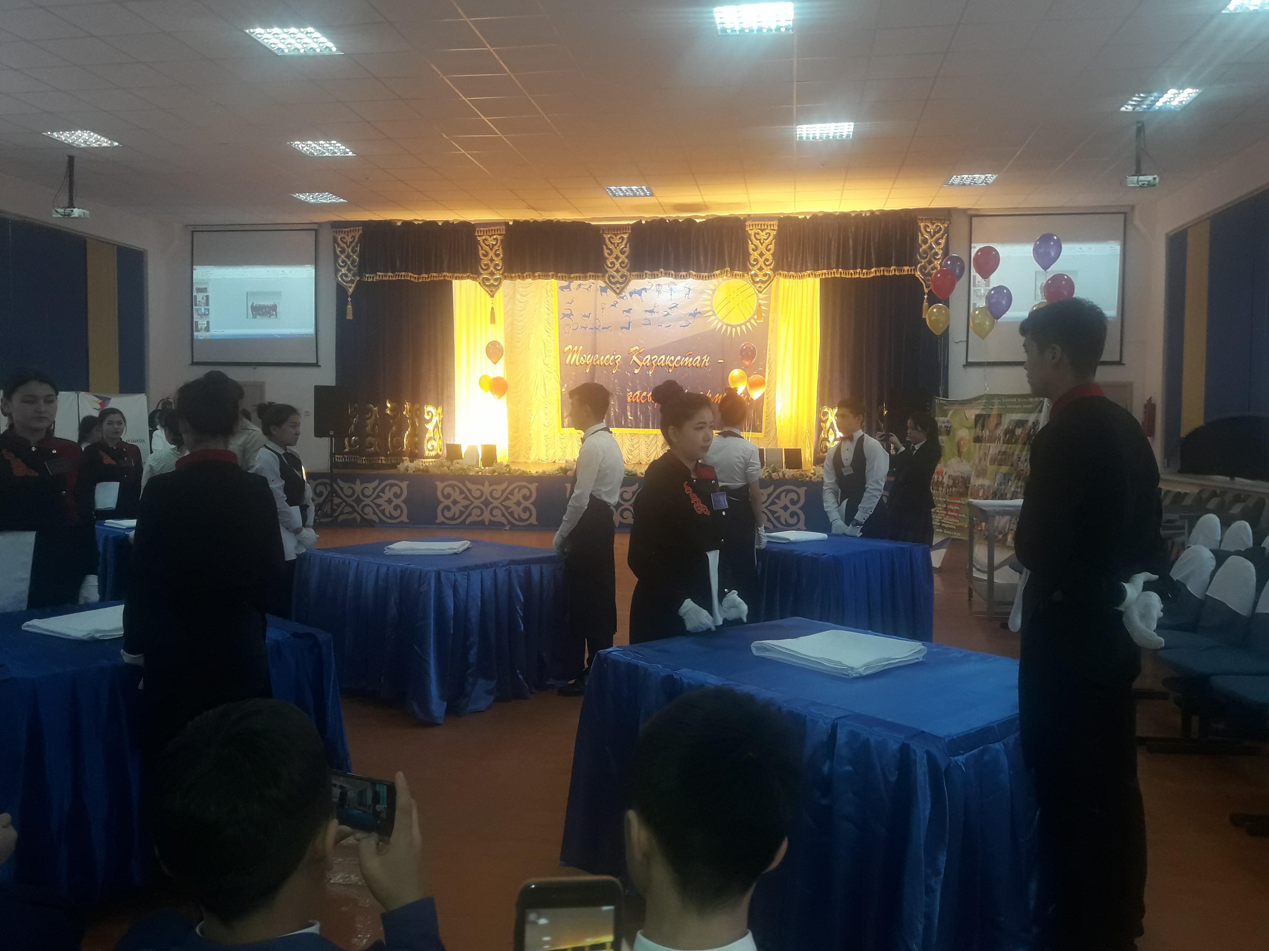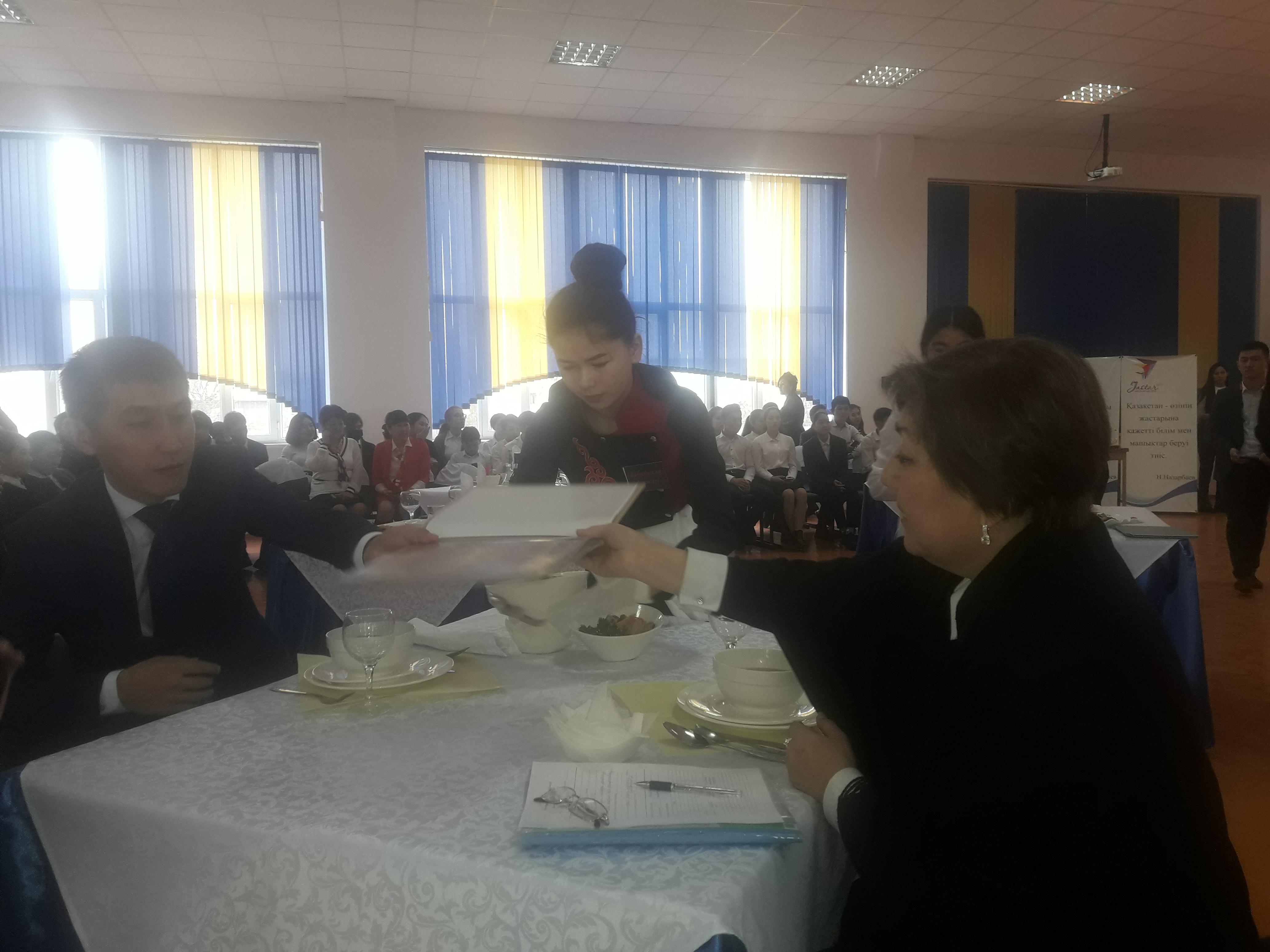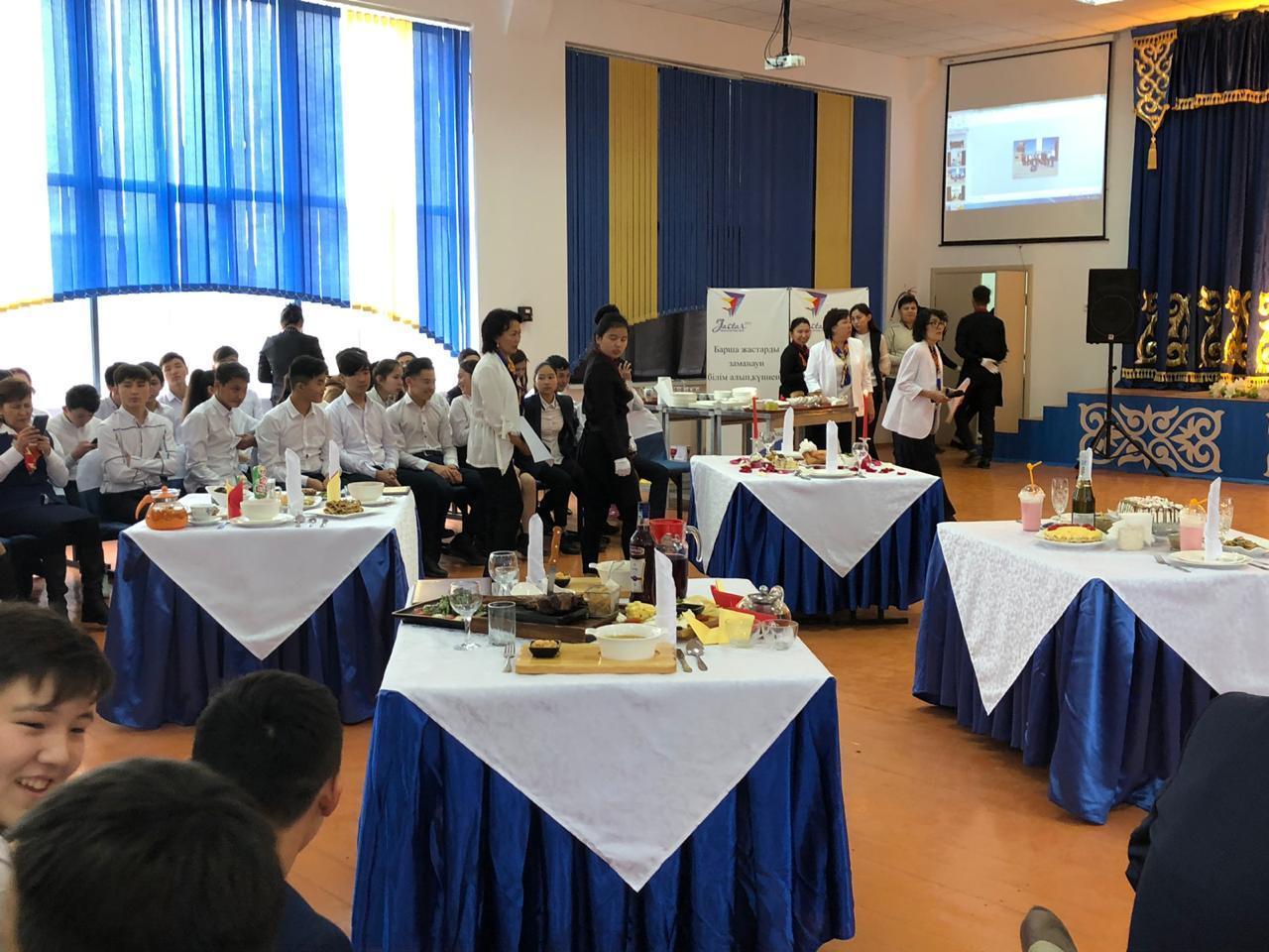 2019 жылдың 13 желтоқсан күні кәсіптік бағыт бағдар беру және аспазшы мамандығына баулу, қызығушылығын арттыру мақсатында Тараз сервис және технология колледжінде "Тамақтандыруды ұйымдастыру және қонақ үй шаруашылығы" бағытының өткізілген «Банкет за столом с полным обслуживанием официантами» атты кіріктірілген жарыс сабағы өтті. Іс шараға 9 сынып білім алушыларының аспазшы мамандығын таңдап және қызығушылық танытып отырған балалар қатыстырылды.