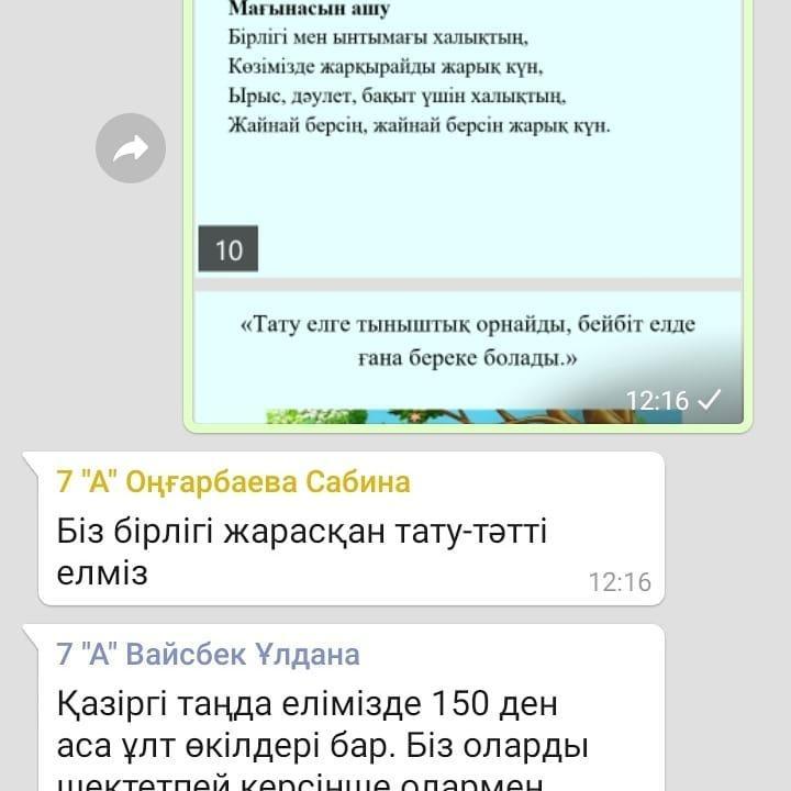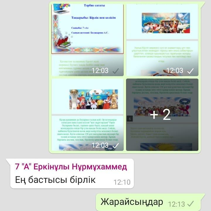 29 апрель 2020 0 1 2 3 4 5 "Бірлік пен келісім" "Бірлік пен келісім" тақырыбында онлайн сабақ, 7 "А" сынып жетекшісі Болжырова Алтынай