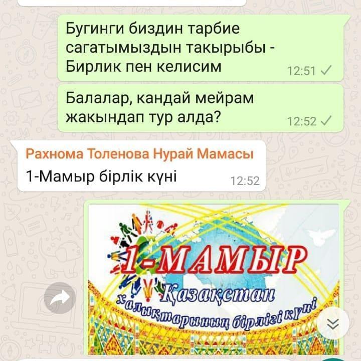 29 апрель 2020 0 1 2 3 4 5 "Бірлік пен келісім" "Бірлік пен келісім" тақырыбында онлайн сабақ, 5 "Е" сынып жетекшісі Рыскулбекова Гульмира Беделбаевна