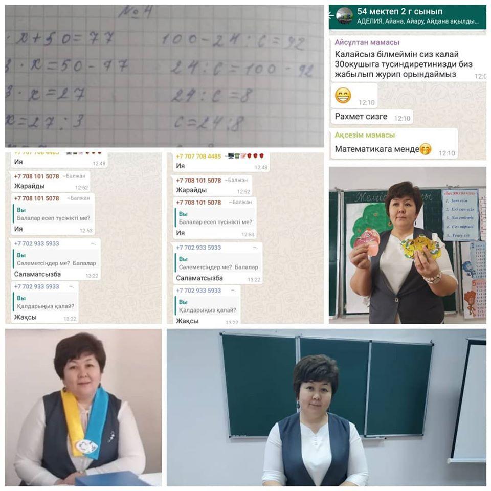 Бастауыш сынып мұғалімі Рысдаулетова Каламкас Жамбыловна “Ұстаздық еткен жалықпас, Үйретуден балаға”, - деп Абай атамыз айтқандай, мемлекет ұстаздардың жағдайын жасап, арнайы заң қабылдағаны мұғалімнің мәртебелі мамандық екенін дәлелдейді. Әр адам өзінің денсаулығына көңіл-бөліп, сақтық ережелерін орындауда. Қашықтықтан оқытуды бастаған кездегі мектеп әкімшілігінің артқан сенімін ақтау үшін, әр сабаққа барынша жауапкершілікпен қараймын. Өйткені, мынандай қиын-қыстау кезде мен де өз үлесімді қосуға міндеттімін. Халықтың саулығынан артық ештеңе жоқ екендігі қазіргі шектеу шаралары кезінде аңғарылды. Ата-ана мен бала арасындағы байланыс беки түсті. Қашықтықтан оқыту тәртібіне сәйкес, ұстаз бен оқушы арасында онлайн жүйе қалыптасты. Ата-ана, бала, мұғалім арасында жақынырақ байланыс орнады. Балаларға сабағымды WhatsApp желісінде үйретіп, ата-анадан да, білім алушылардан да кері байланыс алып отырамын. Уақыт өткен сайын балаларды сабаққа қызықтырудың түрлі амал-тәсілін ойлап табудамын. Бірақ, балалар шын мәнінде мектепті қатты сағынғандықтарын жиі есіме салады. Осы сынақтан ел болып төрт көзіміз түгел шықсақ, пандемияны шын жеңгеніміз деп есептеймін!!!