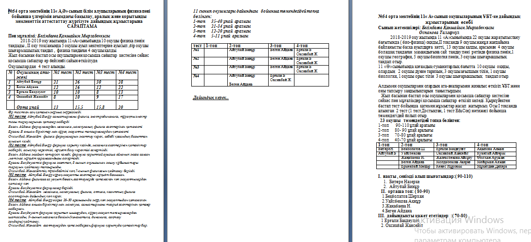 ҰБТ есебі 2018-2019 сараптама » №54 орта мектебі