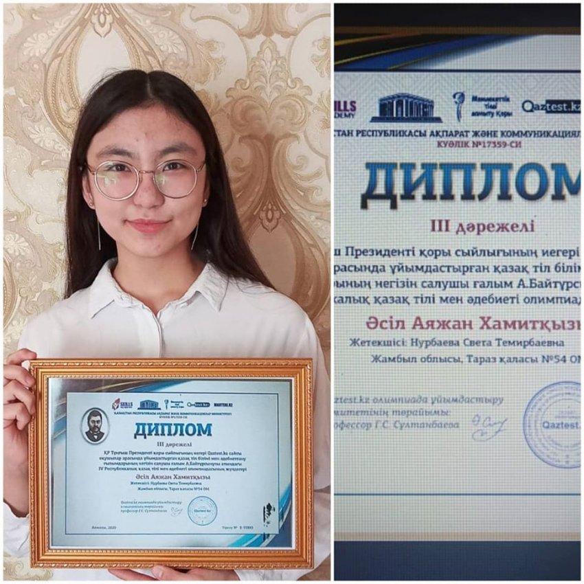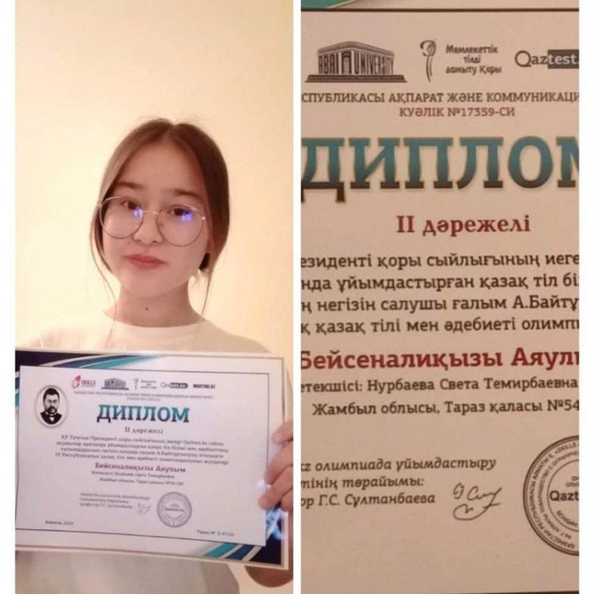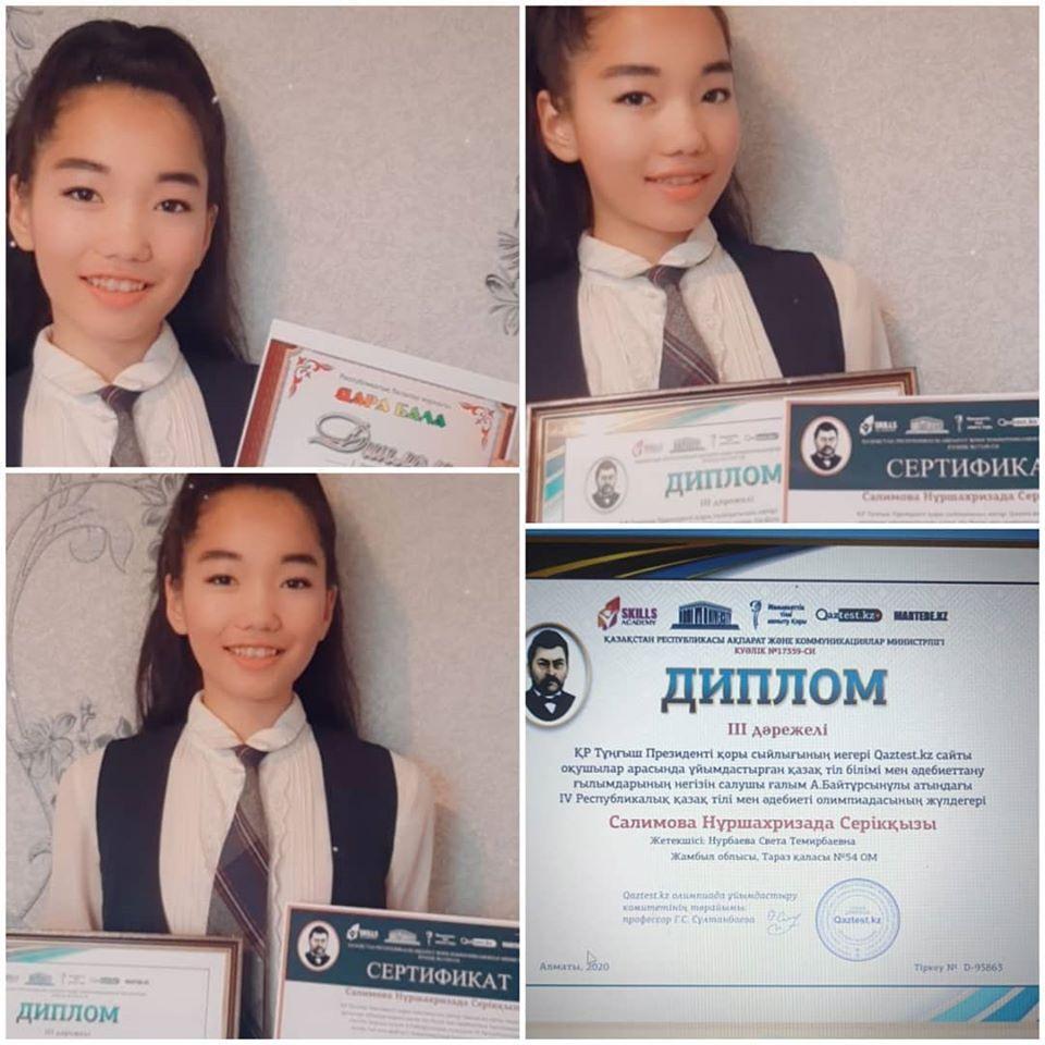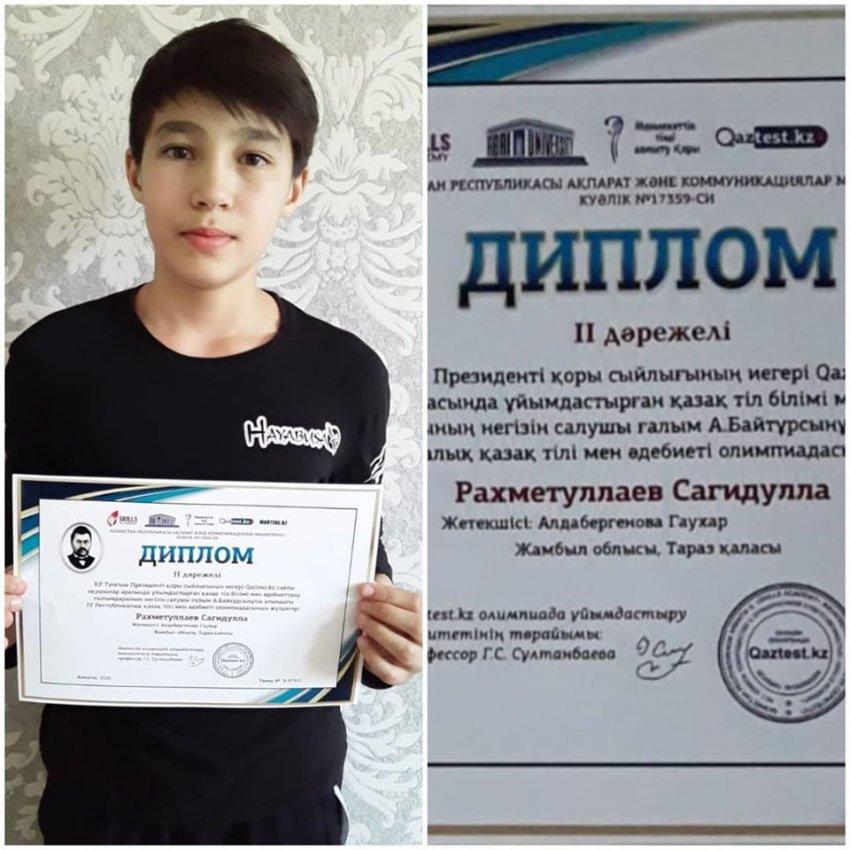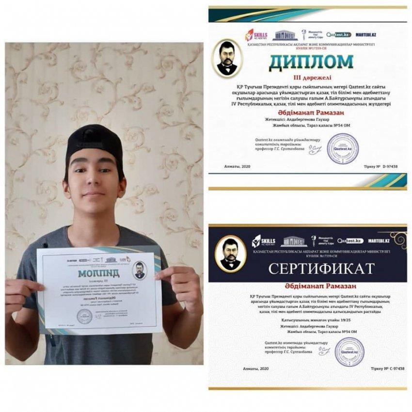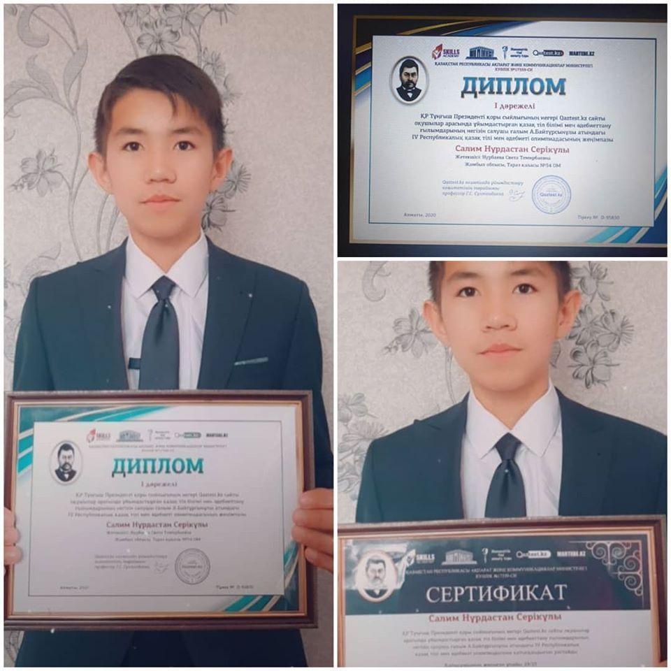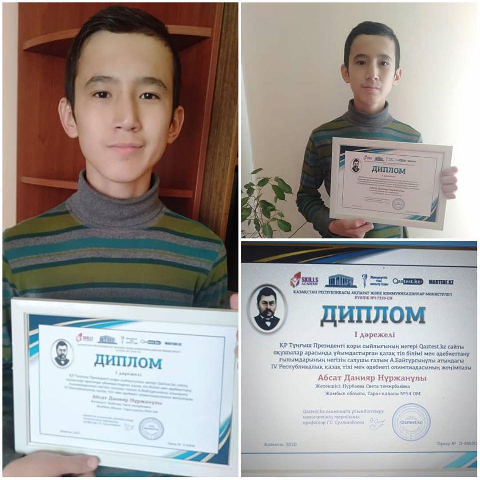23 апрель 2020 0 1 2 3 4 5 Құттықтаймыз! Qaztest.kz сайтының оқушылар арасында ұйымдастырған қазақ тіл білімі мен әдебиеттану ғылымдарының негізін салушы ғалым А. Байтұрсынұлы атындағы IV Республикалық қазақ тілі мен әдебиеті олимпиадасының І, ІІ, ІІІ дәрежелі диплом жүлдегерлері