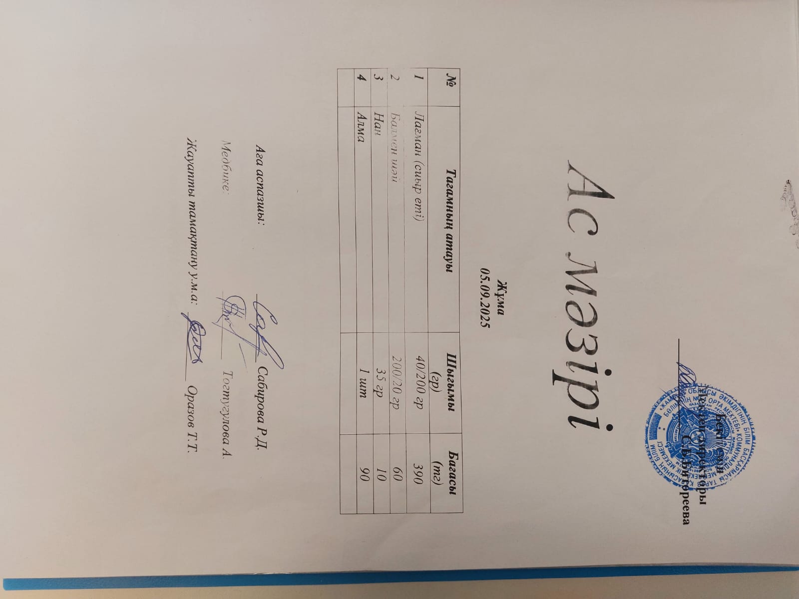 Ас мәзірі 05.-9.2025 » №54 орта мектебі