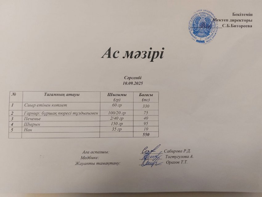 13 октябрь 2025 Ас мәзірі. 04.09.2025
