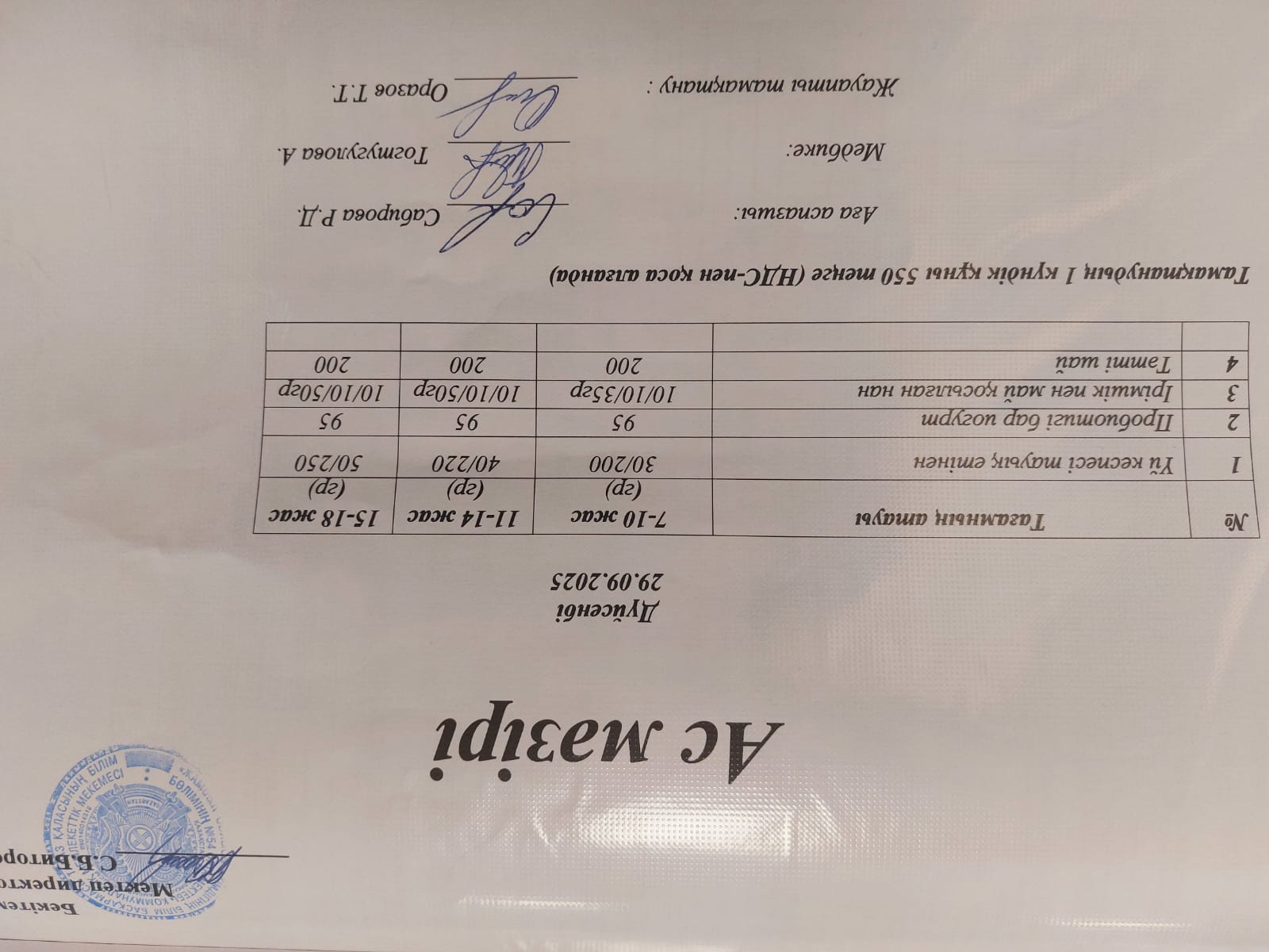 Ас мәзірі 29.09.2025 » №54 орта мектебі