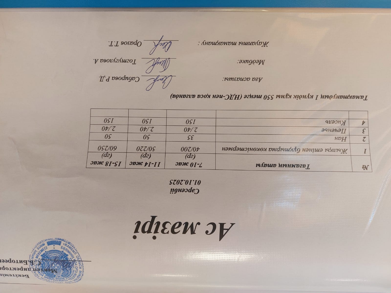 Ас мәзірі 01.10.2025 » №54 орта мектебі