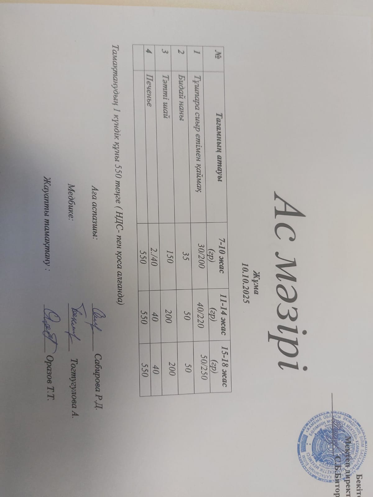 13 октябрь 2025 Ас мәзірі 18.09.2025