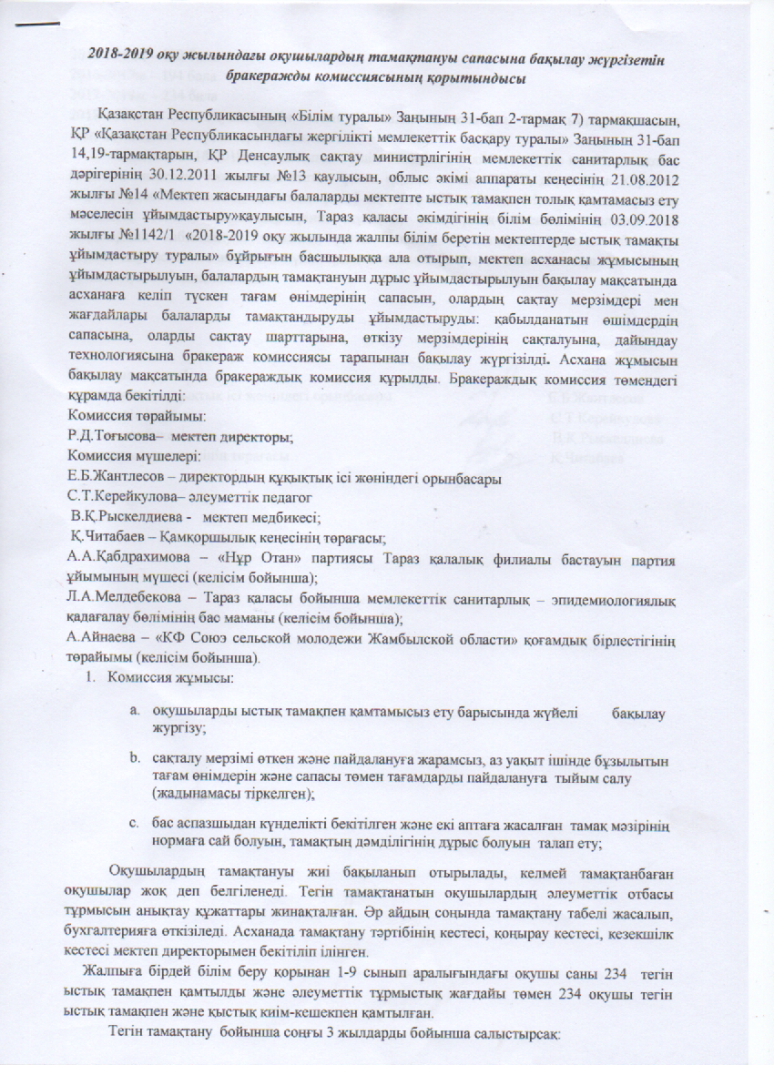 2018-19 оқу жылындағы брокеражды комиссияның қорытындысы » №54 орта мектебі
